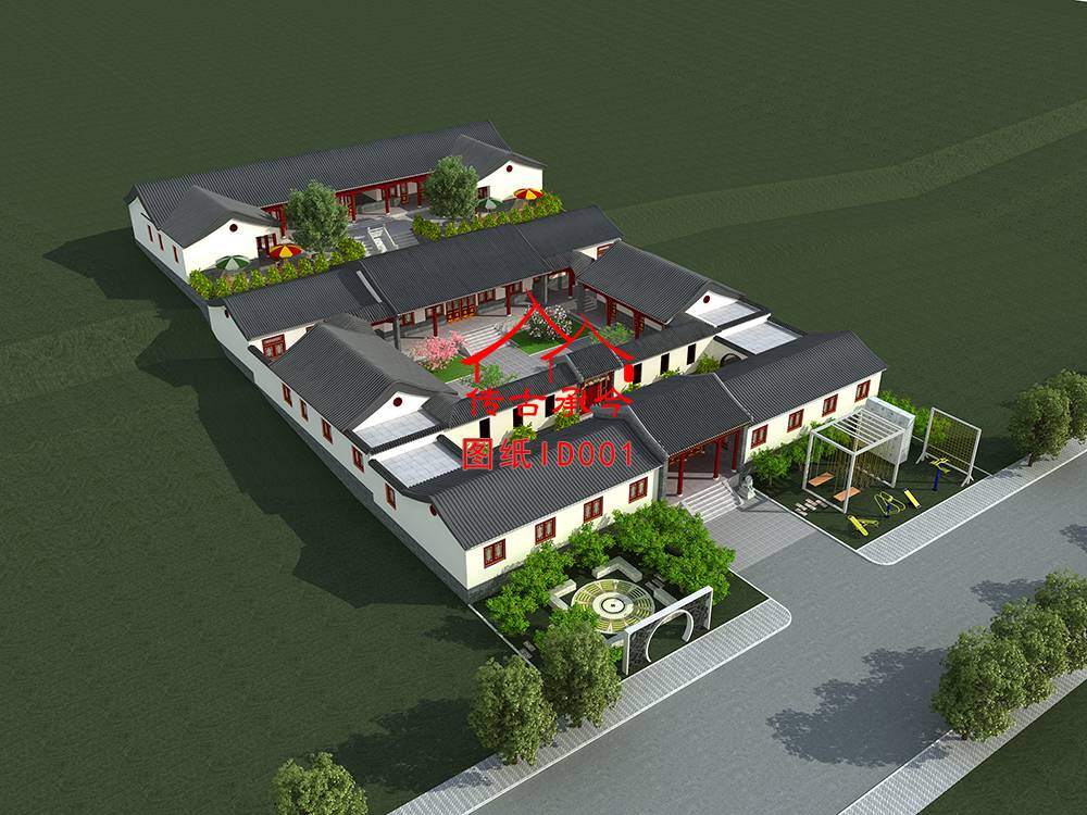 編號001生態園農家樂四合院圖紙面寬36米,進深55米三進四合院全套施工圖紙 自建房圖紙 提供材料及技術支持
